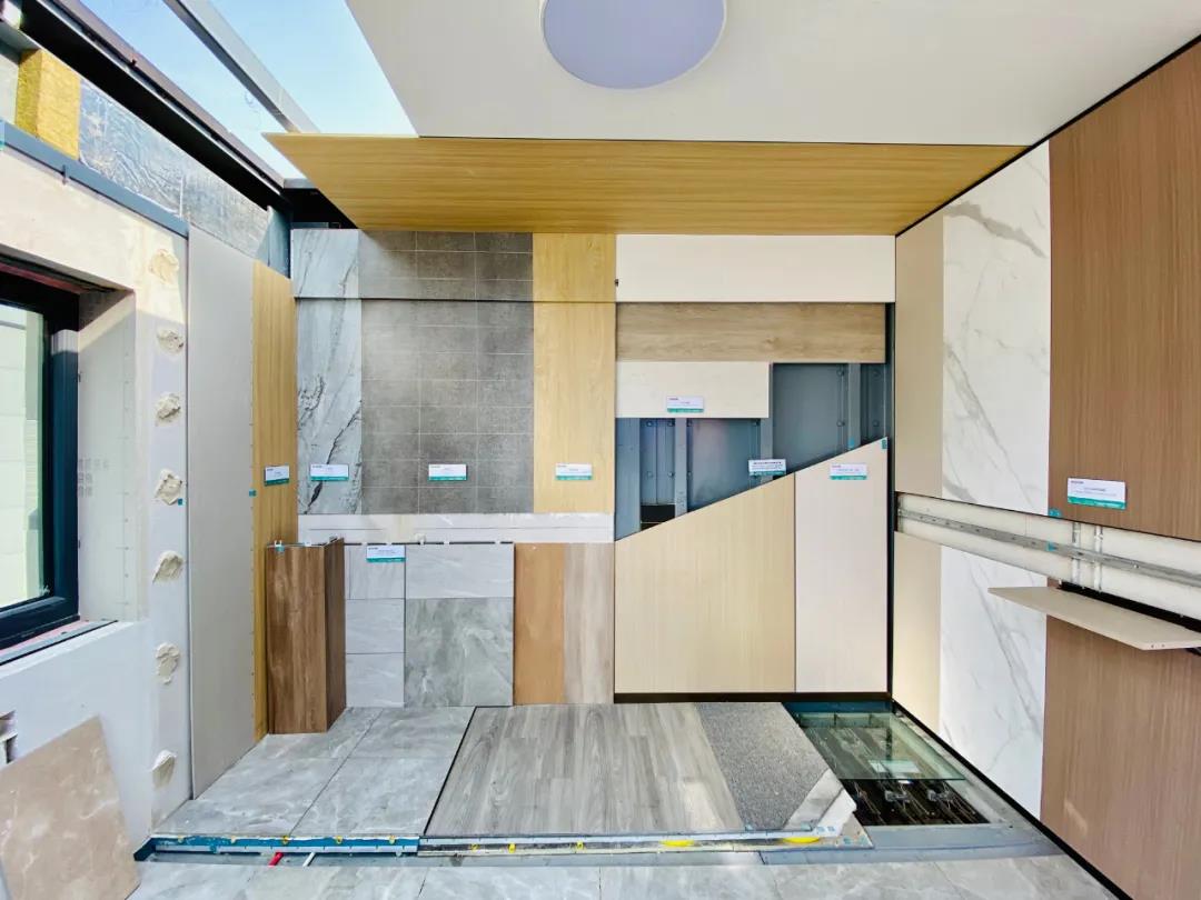 樣板間由熱軋型鋼組合異形砼柱、輕鋼龍骨復(fù)合墻體約束鋼板剪力墻、非標(biāo)定制窄翼緣H型鋼梁等主體結(jié)構(gòu)構(gòu)成,以快裝瓷磚襯板卡扣式墻面、GI干法墻面、快裝吊頂系統(tǒng)、快裝墻面系統(tǒng)、PP架空瓷磚/spc地面、智能家居系統(tǒng)等內(nèi)裝最新技術(shù)適配。